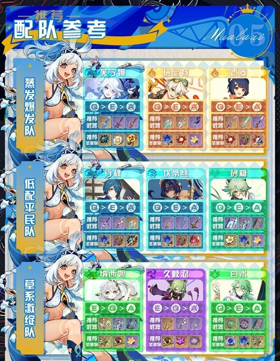 草系激绽队:玛拉妮+纳西妲+久岐忍+白术
