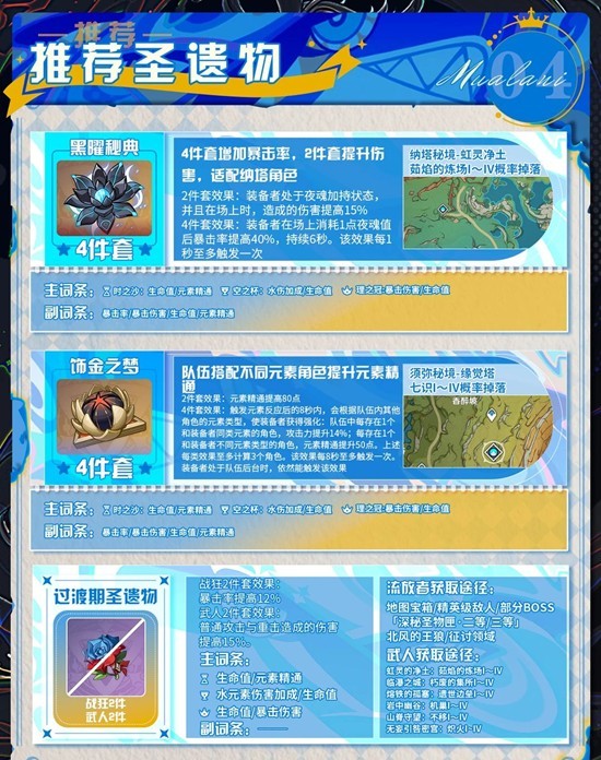 4件套增加暴击率,2件套提升伤害,适配纳塔角色