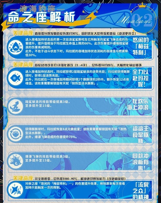 进入夜魂加持状态时,玛拉妮获得2层踏鲨破浪的浪势充能;玛拉妮获得豚豚球时,获得1层浪势充能。