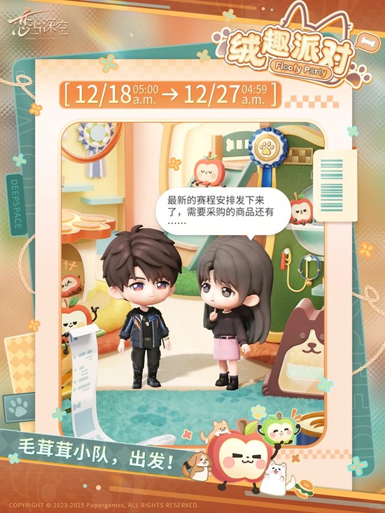 以上就是恋与深空福利活跃活动「绒趣派对」12月18日开启的全部内容了,更多游戏资讯,攻略内容敬请关注切游网,您的支持是我们努力的动力!
