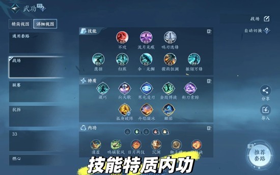 ② 流派技能:鹰掠、归燕、伞·无懈、骤雨狂澜、振翎万锋。我个人是不太喜欢用千机如至·天袭的,开伞感觉更顺手一些,如果喜欢在天上开飞机的可以换成千机如至·天袭