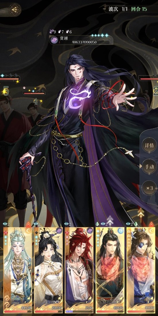 命盘在后面几张,目前是15回合打完,还是有很多输出空间的,练度应该可以继续降低。