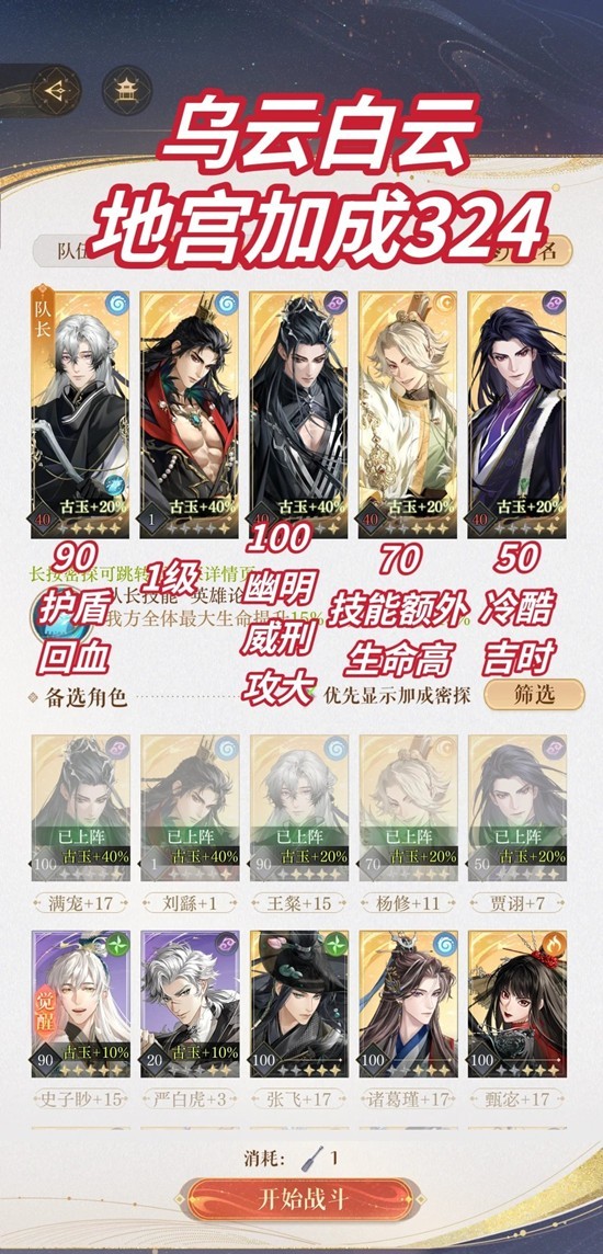 以上就是如鸢傅融地宫满加成324,一级刘繇第56层满古玉攻略的全部内容了,更多游戏资讯,攻略内容敬请关注切游网,您的支持是我们努力的动力!