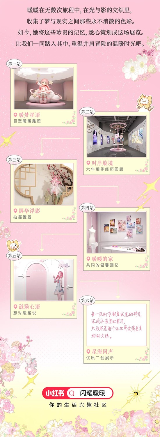 小红书站内搜索「闪耀暖暖」或「闪耀暖暖线下艺术展」,点击顶部活动入口,即可进入云展厅页面。