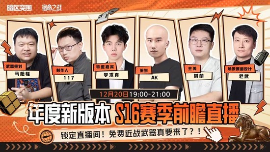 暗区突围S16「宿命之战」前瞻直播定档12月20日19:00,官方将在B站、抖音、快手、虎牙全平台同步开播。据运营透露,本次直播时长约90分钟,将一次性公开新版本全部核心内容:包括首张“命运擂台”地图、枪械手感重置、身份系统革新以及免费近战武器完整获取路线,观看期间弹幕掉落CDK、限定头像框与点券周边,助先锋提前备战新赛季。