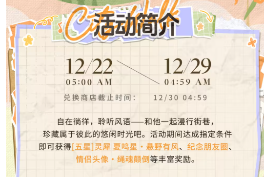 12月22日05:00后进入[活动中心]-[云间叙游]自动触发剧情