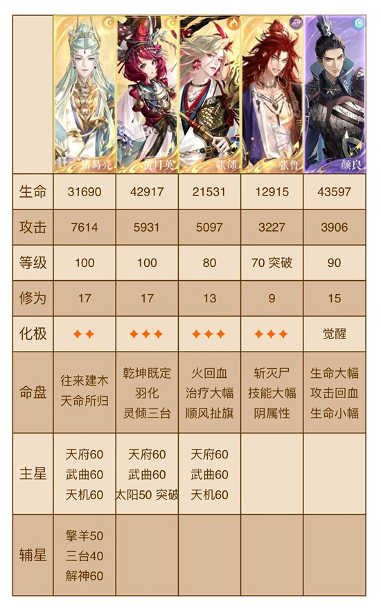4、张郃、颜良也可替换其它密探,如王粲、曹植(不建议用董奉,以免出现场上无信徒的情况,董奉无法对贾诩造成伤害),张鲁命盘只需斩灭,诸葛亮命盘需要往来