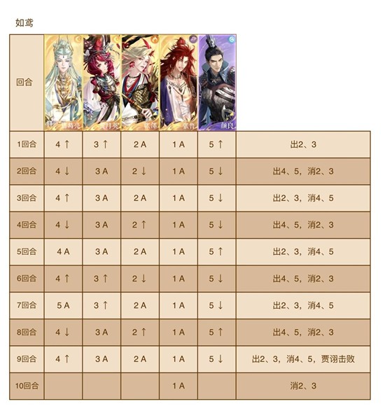1、因为本关贾诩的机制会导致信徒出现随机性,图三表格仅针对我打时出现的情况(每回合都出现2个信徒),需要根据各自回合出现信徒的数字来操作(具体情况看图四),不要盲目跟图三