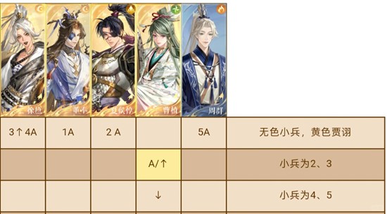 关于曹植,根据剩余小兵选择攻击还是防御,在贾诩4、5格能量的时候对贾诩放大。