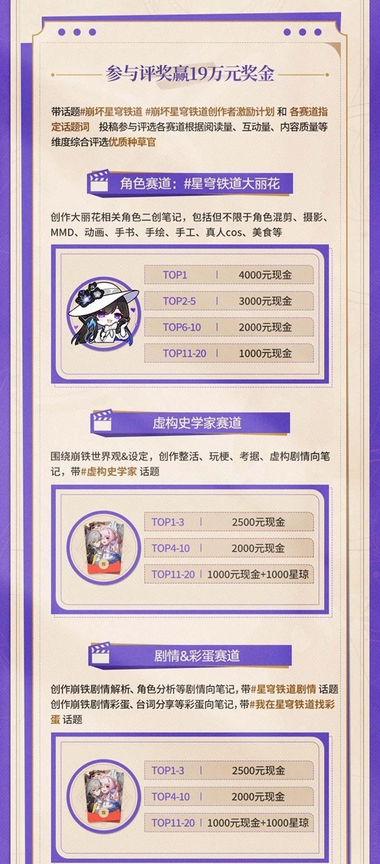 活动规则及详情可查阅图片,或搜索「崩坏星穹铁道创作者激励计划」前往活动页面、了解更多活动信息。