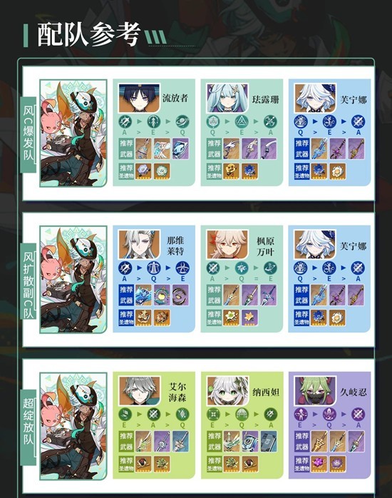 风扩散副C队:伊法+那维莱特+枫原万叶+芙宁娜