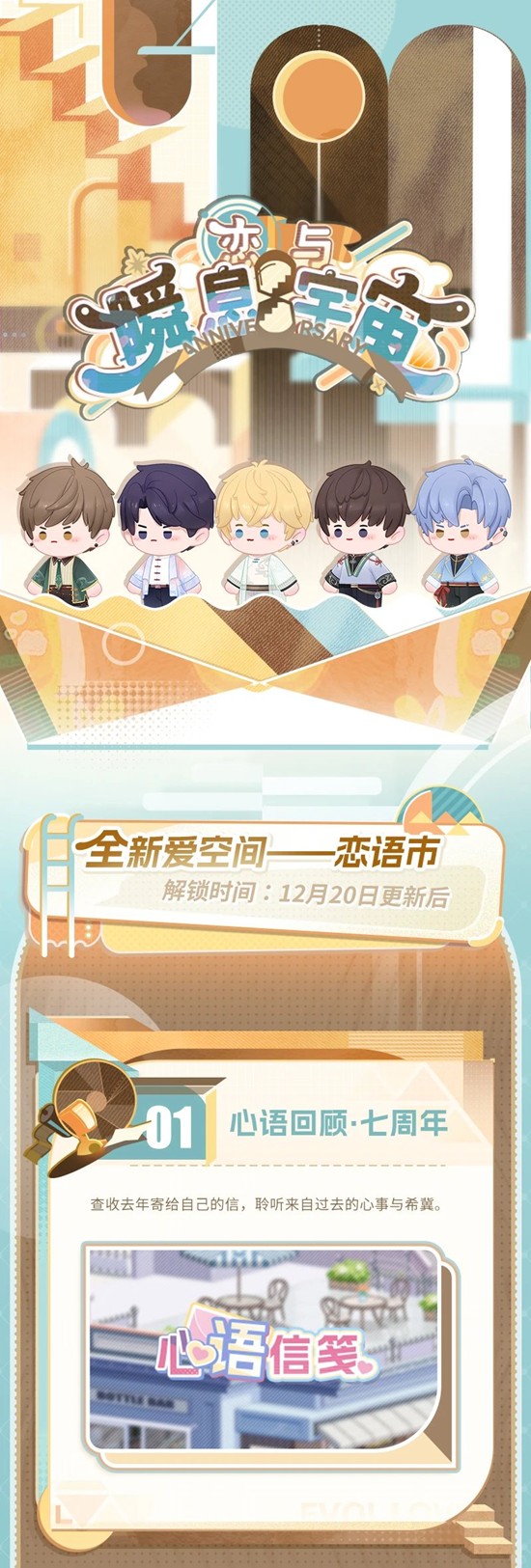 恋与制作人恋与瞬息宇宙,重返恋语市活动开启~充实有趣的瞬息宇宙之旅即将告一段落,带着相机里满满的回忆,和他一起回到快乐老家恋语市,度过灿烂而美好的八周年纪念日吧!和他一同回到恋语市,阅读周年纪念日特别剧情,还可DIY文字烟花哦!一起来和小编看看吧~