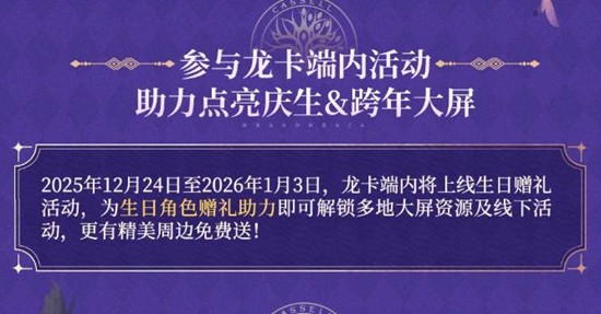 庆生&跨年双重仪式感,线上赠礼与线下大屏同步点亮!更多助力档位、周边名单与创作者奖金分配,敬请关注切游网后续报道。