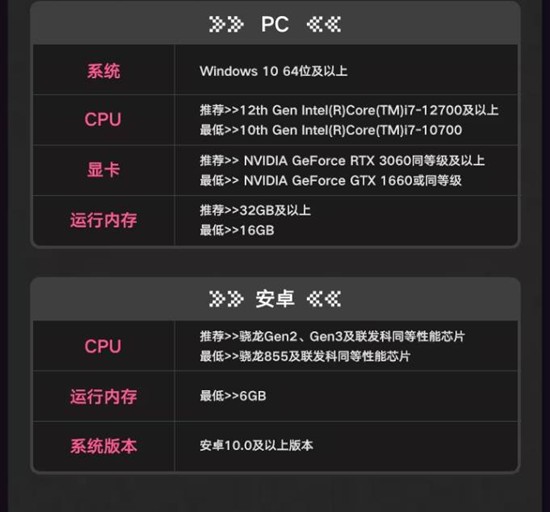推荐配置:PC端i7-12700+RTX3060+32GB;安卓端骁龙Gen2+6GB RAM,确保城市加载与光追特效流畅运行。