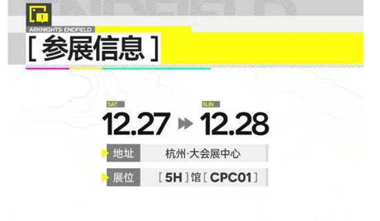 明日方舟:终末地CP32 HANGZHOU Pre参展情报公开5号馆CPC01邀管理员集结~时间:2025年12月27日-12月28日,杭州大会展中心5号馆CPC01展位。