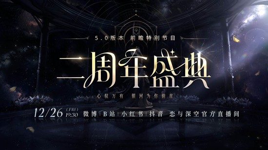 宇宙历649年,阿洛尔星系即将迎来新女王——《恋与深空》5.0版本「二周年盛典」定于12月31日上线,官方前瞻特别节目将于12月26日19:30在微博、B站、抖音、小红书同步直播,首次曝光寰宙帝国剧情、全新男主造型及周年福利。