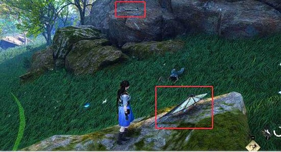 交还给刘三妹后,她提示离千年渡最近的石头山有线索,前往石头山分别拾取「木鸢断翅(左)」与「木鸢断翅(右)」