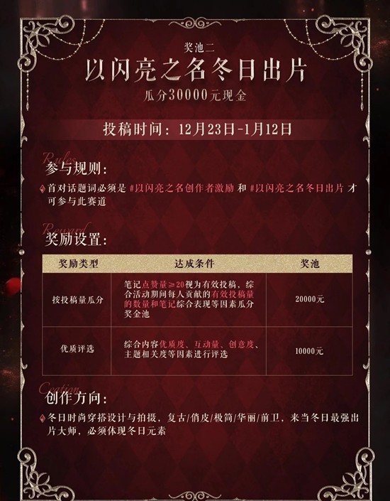 即日起带话题#以闪亮之名创作者激励 和 各赛道指定话题,分享与《以闪亮之名》游戏最新版本相关的精彩创作,即有机会瓜分10万现金奖励。