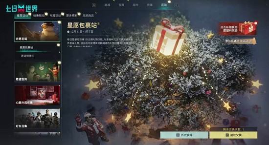 星愿包裹站(新活动)每日完成生存任务收集“星愿贴纸”,可兑换限定载具皮肤「雪橇快递」、家具「壁炉圣诞树」及星铸券。