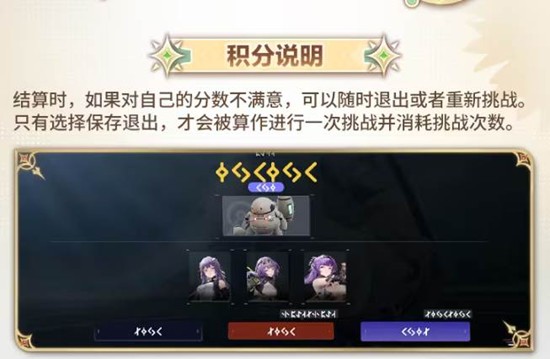 玩家在结算时如果对自己的分数不满意,可以随时退出或者重新挑战。只有选择保存退出,才会被算作进行一次挑战并消耗挑战次数。