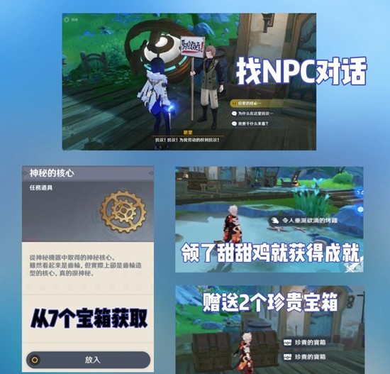 这时回去发现 初见埋着NPC已经不在了,点击他留下的「 令人垂涎欲滴的烤鸡」 就能获得该成就 + 珍贵宝箱X2 (2个珍贵宝箱总计: 40原石)