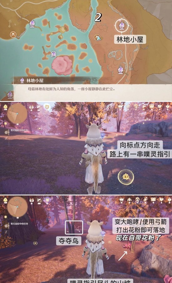 一开始做的时候母菇林地的花粉需要自己打,所以还做了两张指引花粉的