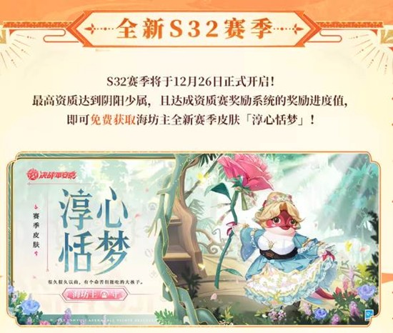 S32赛季也在26号同步重启,最高资质达到阴阳少属并完成奖励进度,即可免费领取海坊主赛季皮肤淳心恬梦,水纹护盾与睡梦气泡特效软萌治愈。赏金特典同步开放,380勾玉解锁全部内容:10级可得天井下御缘奉纳,80级再领海坊主臻爱一生,两款皮肤皆为特典独占,错过等一年。