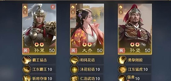例如,当玩家在编队时选择了孙策、孙坚和大乔这三位武将,由于他们都属于吴国阵营,缘分系统就会被自动激活。激活后,这三名武将在战斗中会获得“江东霸主”的缘分效果。同理,使用鲁肃、周瑜和孙权组建阵容,则可以激活“连环箭阵”的缘分效果。不同的缘分组合会为对应的兵种带来各不相同的属性加成。