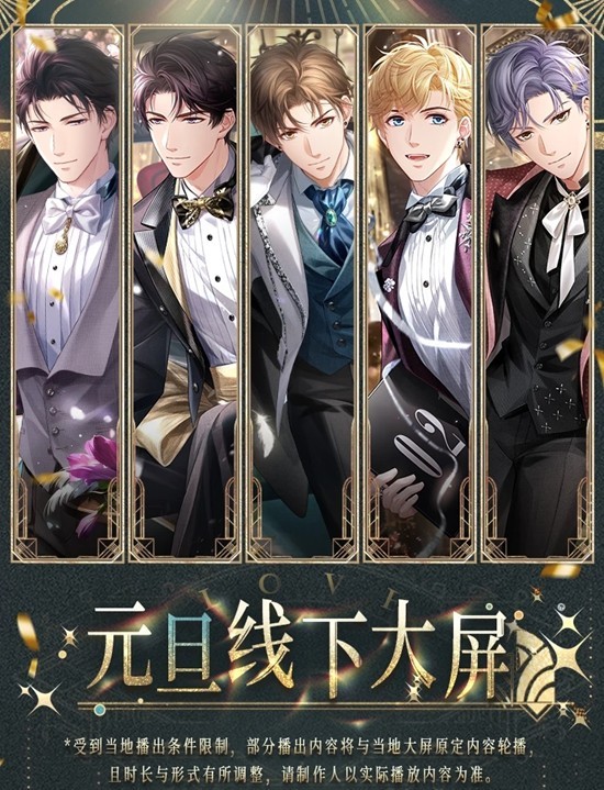 恋与制作人元旦线下大屏将于成都及北京地区上线~华屏启新序,灯火共年年。元旦假期将至,与他共同回顾那一夜晚宴的浪漫时刻。受到当地播出条件限制,部分播出内容将与当地大屏原定内容轮播,且时长与形式有所调整,请制作人以实际播放内容为准。一起来和小编看看吧~