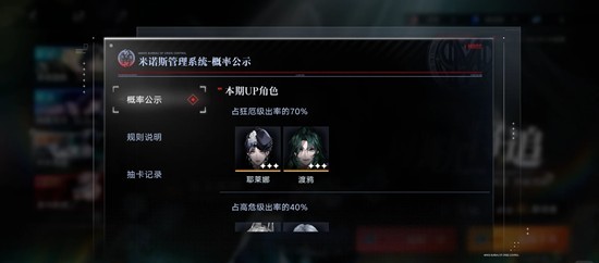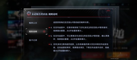 首先我们熟悉下定轨池的规则,简单来说就是两个角色2选1,如果小保底歪了获得一点线索值,下个狂必出你选的角色。