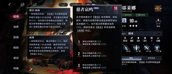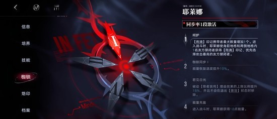 然后我们来熟悉下耶莱娜,简单说就是增加暴击率及暴击伤害(相当多),所有能暴击的角色都能用,因此耶妈属于必备卡类型。一锁加快启动和多一个人吃buff,3锁则是获得最多耶莱娜40%攻击力加成。