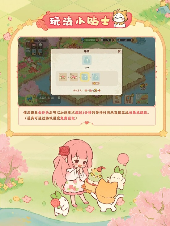 使用道具全斧头后可以加速单次超过1分钟的等待时间来直接完成收集或建造(道具可通过游戏进度免费获取)