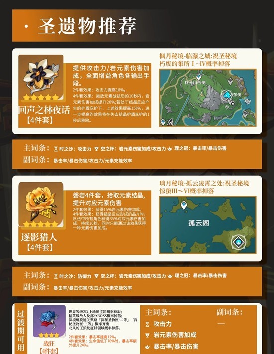 圣遗物推荐:①回声4,②磐岩4,③战狂4(过渡)