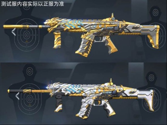 王者白虎在SCAR Light-白虎基础上全面镀上鎏金,枪托至枪口被厚重金甲包裹,银灰底色与冰蓝能量纹形成撞色,枪头白虎浮雕栩栩如生,淡蓝光环映衬,神兽气息与未来科技同步拉满。
