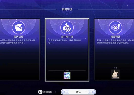 职级紫金开局,投资环境选首次达到5连胜时,获得财富宝钻。