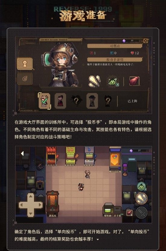 ●进入对战前,选择你的投币手,各有独特的能力,正式选择完后,便进入到场地中。