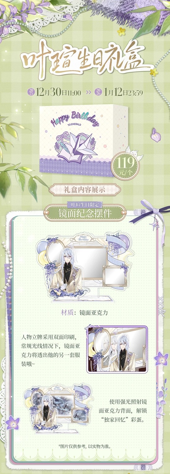 时空中的绘旅人2025叶瑄生日周边预售明日开启~2025年12月30日11:00 - 2026年1月12日,预售周边包含2025叶瑄生日礼盒:徽章、镜面纪念摆件、花束卡、旋转纪念卡、纸夹相卡、邮票折页。一起来和小编看看吧~
