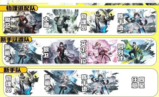 适用角色:如果新手玩家抽到骏卫或黎风即可组成物理队。