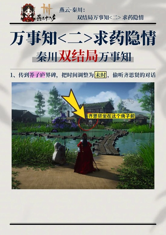 以上就是燕云十六声秦川双结局万事知此亲非亲和求药隐情怎么做攻略的全部内容了,更多游戏资讯,攻略内容敬请关注切游网,您的支持是我们努力的动力!