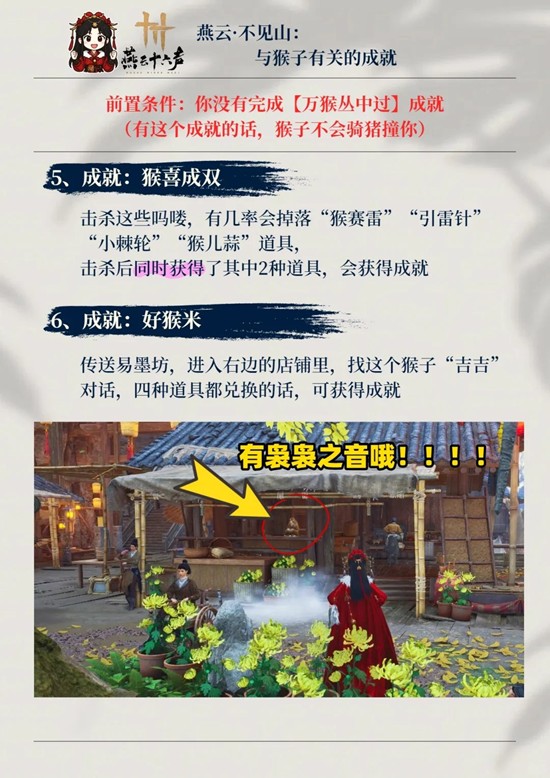 以上就是燕云十六声不见山成就攻略,猴子成就怎么获得攻略的全部内容了,更多游戏资讯,攻略内容敬请关注切游网,您的支持是我们努力的动力!
