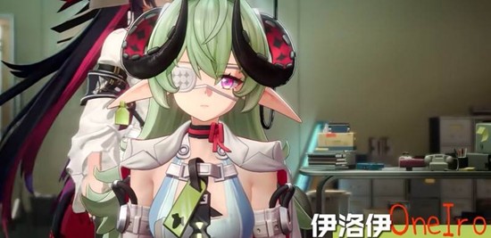 伊洛伊的签名呆萌朴素,胸前有十字标记,手臂配有装置,很可能是异环中的首位治疗向角色。其名源于北欧梦神,结合恶魔角与眼罩设计,推测她可能拥有操控梦境或施加幻觉的能力,并非纯粹的奶妈。