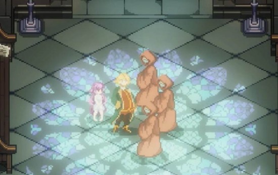画面风格是把二次元、像素和克苏鲁元素混在一起,听起来好像会很违和,但实际看起来意外地和谐。背景氛围营造得比较诡异压抑,角色设计又是萌系像素风,这种反差感形成了独特的视觉效果。场景设计借鉴了不少中世纪建筑风格,喜欢复古调调的玩家应该会很喜欢。