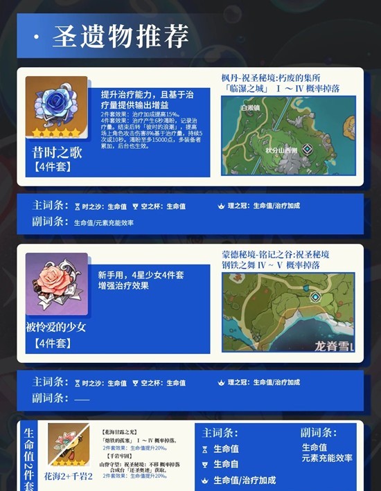圣遗物推荐: ①昔时之歌 ②少女套 ③花海2+千岩2