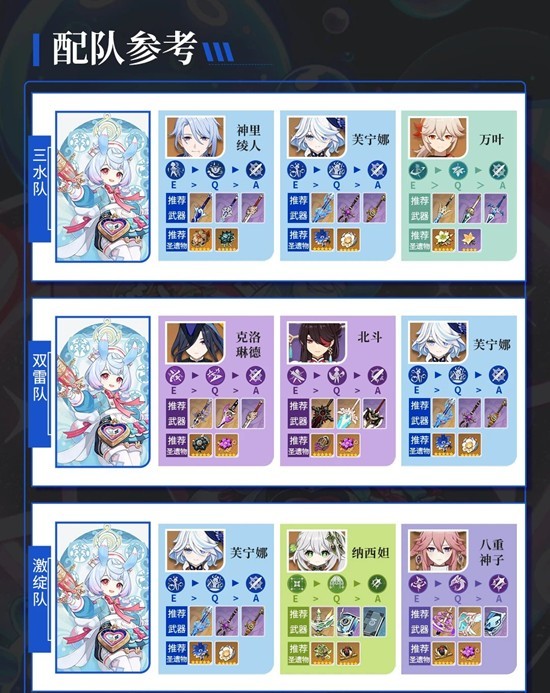 ①三水队:希格雯,绫人,芙宁娜,万叶
