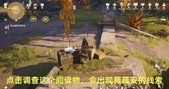 然后向地图上的黄色圆圈走,看到有一本阅读物,我们点击调查;
