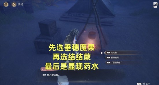 需要将配置药水的材料收集好,就是垂穗魔果和结结蕨,如果有,剧情会自动进行下一步;