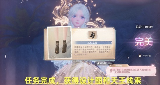 再次和薇薇安对话,进行搭配比拼,完成后,得到设计图纸和性感天王的线索,任务完成( •̀ ω •́ )✧