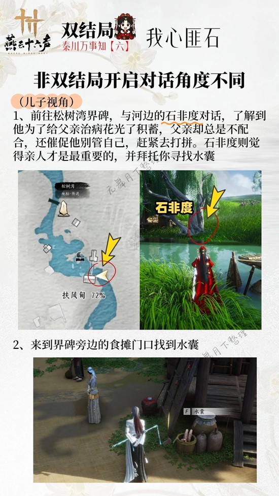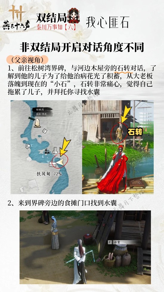 以上就是燕云十六声秦川地区双结局万事知我心匪石怎么做攻略的全部内容了,更多游戏资讯,攻略内容敬请关注切游网,您的支持是我们努力的动力!