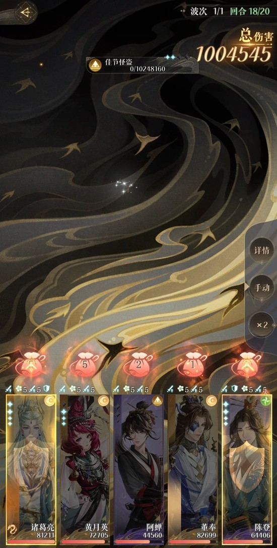 缺点:1号boss没有拿满500币提前退场,回合数长,三星诸葛亮对不上轴。