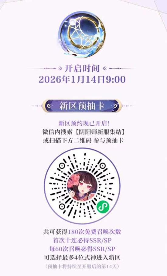 月影沉入琉璃梦境,银丝牵动虚实回廊,全平台互通新区【织梦之墟】已于1月4日0:00开启预约,并将在1月14日9:00正式开服。集结期间,阴阳师大人登录即可参与预抽卡,最高攒下180次免费召唤,提前把心仪SSR/SP收入囊中。